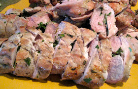 This evening there was going to be 9 of us and I was picking up the food. I chose pork tenderloin as they are lean and tasty and feed a crowd with out spending too much money. The only drawback of pork tenderloin is that like chicken breasts it can be a little dry, so I decided to butterfly the tenderloins and smear with herb butter, to help keep them moist.